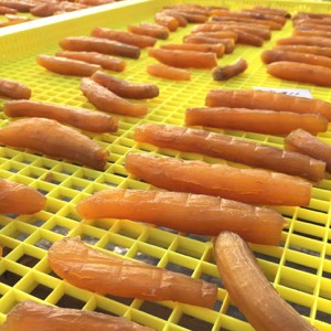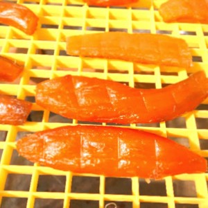 1日目を長く、1枚1枚、1日1回、甘くなってと心で念じて手で表裏を返して、照りを見ながら干上げていきます。